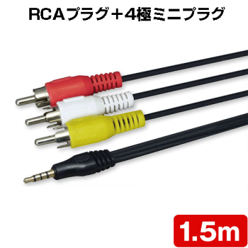 4極ミニプラグ+RCAプラグ 3ピン 1.5m(RCA × 3本、黄白赤)(映像 音声 テレビ)(e5995) yct3