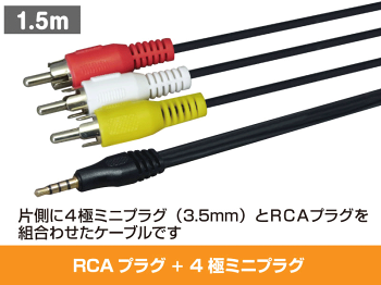 4極ミニプラグ(3.5mm)と定番のRCA端子間を接続するケーブルです。